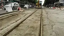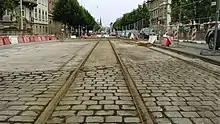 Les voies des premières lignes dans les rues de la ville étaient disposées de manière centrale mais les militaires exprimèrent rapidement leur mécontentement et exigèrent une installation latérale des voies. Les voies installées au milieu des rues furent alors démontées et réinstallées sur les côtés latéraux[4].