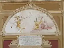 L'intérieur, à nef unique, avec quatre chapelles de chaque côté, a été peint à fresque par Ventura Salimbeni, mais s'étant détériorées avec le temps, ces fresques ont été retouchées, pas trop heureusement, selon les auteurs de l'époque, par de modestes peintres du XIXe siècle. Une autre fresque de Salimbeni se trouvait dans la sacristie. Sur les murs de la nef se trouvaient six médaillons peints à fresque par Carlo Alberto Baratta (1799) et un grand dans la voûte centrale, œuvre de Federico Peschiera (1848)[1],[4] mais aujourd'hui la majeure partie de la décoration, endommagée par la guerre, n'est plus lisible.