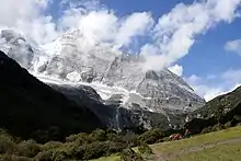 ∗ La branche sud passe par Litang 理塘, une bourgade perdue à plus de 4 000 mètres d'altitude où vivent actuellement 47 500 habitants (en 2001), et qui déjà en 1810, comportait une population non religieuse de 5 320 familles et dont les 45 bâtiments monacaux abritaient 3 270 moines. Surplombant la ville, se trouve le plus grand monastère de l'école Gelugpa du Kham, nommé Thupten Jampaling. Construit en 1560 par le troisième dalaï-lama, il hébergeait plusieurs milliers de moines[23] avant 1950 et comme tous les grands monastères tibétains, il imprimait des livres, rendait la justice, faisait du commerce et au besoin lançait des opérations armées. À l'époque de l'ancien Tibet, les monastères contrôlaient l'économie et le gouvernement du pays, possédaient un tiers des terres cultivables, beaucoup de pâturages, et un grand nombre de serfs et d'esclaves (Ma[28], 1995). L'ensemble des institutions religieuses, monastères et Potala, collectaient la majorité des richesses produites (revenus et taxes, aides du gouvernement et dons des pèlerins) qu'ils dépensaient en grande partie dans leurs activités religieuses.