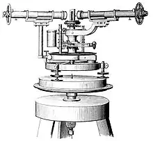 - à une unité de mesure de longueur. Dans son livre Recherches sur le spectre solaire de 1868, Ångström introduit une unité de mesure des longueurs d'onde égale à un dix millionième de millimètre (10−7 mm). Cette unité, particulièrement commode pour écrire les longueurs d'onde, est rapidement adoptée par la communauté des spectroscopistes, puis des atomistes. En 1892-1895, Albert A. Michelson l'appelle ångström en l'honneur de son auteur. Il redéfinit sa longueur de telle sorte que la longueur d'onde de la raie rouge du cadmium soit égale à 6438,47 ångströms[20]. En 1907, l'Union internationale pour la coopération en recherche solaire (qui est devenue l'Union astronomique internationale) définit l'ångström international comme la longueur telle que la raie rouge du cadmium a exactement la longueur d'onde de 6438,4696 ångström international. Cette définition sera confirmée par le Bureau international des poids et mesures en 1927. En 1960, l'ångström est redéfini comme égal à 0,1 nanomètre (10−10 m). L'ångström ne fait pas partie du Système international d'unités (SI) et son usage est désormais déconseillé.