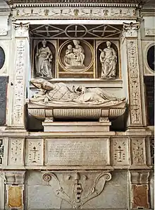 Sculpteur et architecte italien, formé dans la Bottega d'Antonio Pollaiolo, Andrea Sansovino se rend en 1504 à Rome, où il érige à Santa Maria del Popolo les tombeaux d'Ascanio Sforza (1505) et de Girolamo Basso (1507), dans un style florentin amplifié par les statues des niches et le couronnement.
