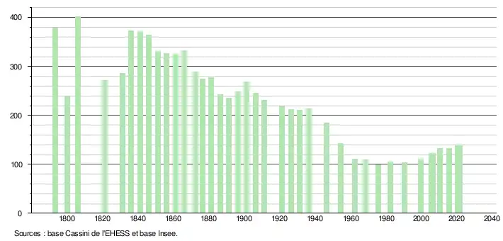 - Fiches Insee - Populations légales de la commune pour les années 2006, 2007, 2008, 2009, 2010, 2011, 2012, 2013, 2014, 2015, 2016, 2017, 2018, 2019, 2020 et 2021.