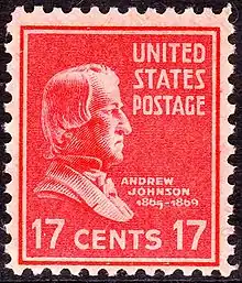 Andrew Johnson, né le à Raleigh (Caroline du Nord) et mort le à Elizabethton (Tennessee), est un homme d'État américain, 17e président des États-Unis en fonction de 1865 à 1869. Membre du Parti démocrate et 16e vice-président des États-Unis élu en 1864 comme colistier d'Abraham Lincoln, Johnson succéda à ce dernier après son assassinat l'année suivante. Lors de la Reconstruction après la guerre de Sécession, il défend une réintégration rapide des États du Sud sans garantie pour les droits civiques des esclaves affranchis. Le Congrès dominé par les Républicains radicaux s'oppose fortement à cette politique et une procédure d'impeachment lancée contre le président échoue de justesse.
