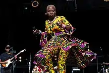 Angélique Kidjo, née le à Ouidah, une petite ville portuaire de la République du Bénin, est une chanteuse béninoise et française[1],[2], cinq fois lauréate des Grammy Awards et lauréate de l'Académie Charles Cros connue pour la diversité de ses influences musicales, l'originalité de ses clips et son engagement humanitaire comme ambassadrice internationale de l'UNICEF. Elle a chanté lors de la cérémonie d'ouverture des Jeux olympiques de Tokyo 2020 le 23 juillet 2021[3].