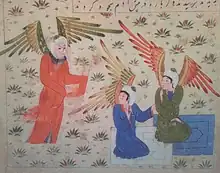 Une autre sourate est une « difficulté dans la doctrine de l’impeccabilité des anges »[33]. Elle fait allusion à Harout et Marout, anges déchus pour avoir succombé aux plaisirs de la chair. Selon le récit ceux-ci ont été enfermés dans une fosse et auraient enseigné aux hommes la magie[37]. Bien que le Coran ne soit pas clair sur le rôle d'Harout et Marout sur Terre, le récit a été canonisé par la tradition islamique[41]. Tabari attribue cette histoire à Ibn Masud et Ibn Abbas[42]. De nombreuses légendes à propos de ces anges sont présentes dans les commentaires coraniques classiques[43]. Le récit est contredit par des penseurs musulmans défendant la doctrine de l’impeccabilité des anges[33].