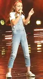 À neuf ans[8],[9], elle participe à la saison 4 du télé-crochet The Voice Kids (diffusée en 2017). Pour son audition à l'aveugle, qui deviendra la première audition diffusée dans cette saison, elle reprend All in You de Synapson feat. Anna Kova. Avant de monter sur scène, elle dit : « C’est la plus grande journée de toute ma vie et si un fauteuil se retourne, je serais la plus heureuse du monde ». Patrick Fiori devient son coach après que tous se furent retournés[8]. Lors des battles, elle gagne contre Eléa et Lara sur Lost on You de LP. Lors de la demi-finale, elle chante J'envoie valser de Zazie. Lors de la finale, elle chante Tous les mêmes de Stromae, puis encore une fois All in You de Synapson feat. Anna Kova et gagne le concours.
