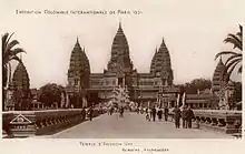 Stimulant l'imagination occidentale et le fantasme d'une civilisation « oubliée » que les Européens auraient, les premiers, redécouverte, Angkor influence les arts. Lors de l'exposition universelle de Paris de 1889, une pagode d'Angkor est érigée sur l'esplanade des Invalides à partir de moulages et de pièces exposées au palais du Trocadéro. En 1900, la danseuse Cléo de Mérode incarne une Apsara d'Angkor. Lors de l'exposition coloniale de Marseille (1906), le pavillon du Cambodge s'inspire d'Angkor Vat et du Bayon. La même année, le roi Sisowath est en visite en France, accompagné de danseuses cambodgiennes qui frappent le public occidental. Enfin, à l'occasion de l'exposition coloniale internationale de 1931 à Paris, une réplique d'Angkor Vat, définitivement emblème par excellence du Cambodge, est créée à la même échelle que l'originale pour accueillir le pavillon de l'Indochine, près du pavillon du Cambodge qui s'inspire pour sa part du musée de Phnom Penh[2].