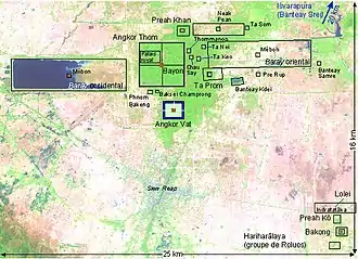 En 2001-2012, une étude archéologique à grande échelle, le Greater Angkor Project a rassemblé l'Université de Sydney (notamment les archéologues australiens Damian Evans et Roland Fletcher), l'École française d'Extrême-Orient, et l'APSARA[5] avec le soutien de l'Australian Nuclear Science and Technology Organisation[6]. Elle a étudié les raisons du déclin d'Angkor et de son abandon en 1431, avec l'intention d'en tirer des enseignements sur l'exploitation durable des ressources naturelles pour l'agriculture. Les premiers résultats de ces recherches — s'appuyant notamment sur des photos satellite de la NASA révélant le moindre édifice alentour, ainsi qu'une vision précise du réseau hydraulique — ont permis l'établissement d'une nouvelle cartographie du site.