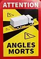 Depuis le [4], les véhicules de 3,5 tonnes et plus doivent afficher un logo « Attention angles morts »[5]. Ces autocollants s'appliquent aux véhicules de transports de marchandises ainsi qu'aux véhicules de transports de passagers.