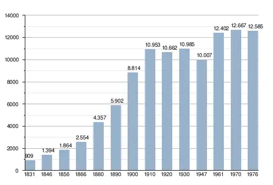 - Sources : INS, Rem. : 1831 jusqu'en 1970 = recensements, 1976 = nombre d'habitants au 31 décembre.