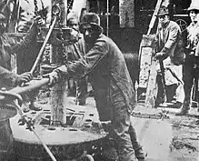 L'explosion de la production de pétrole[14] au Texas, à la suite de découvertes de gisements à 800 mètres sous terre le de la Yount-Lee Oil Company, débouche sur une production record de 21 millions de barils en 1927, et place la Standard Oil en position de force face à la Royal Dutch et à l'Anglo Persian Oil lors de négociations après la découverte de nouvelles réserves de pétrole en Iran[15].