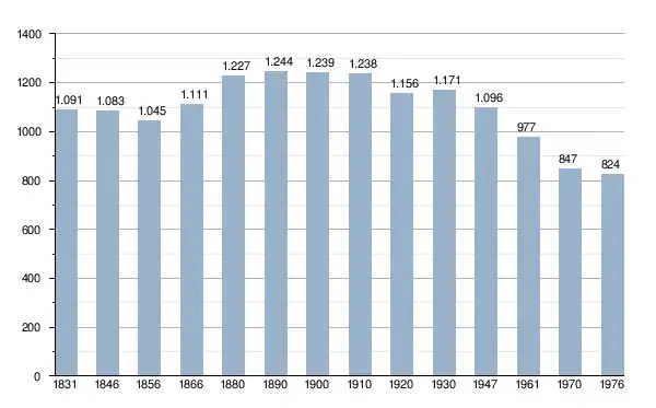- Sources : INS, Rem. : 1831 jusqu'en 1970 = recensements, 1976 = nombre d'habitants au 31 décembre.