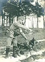 Pendant l'occupation du nord-est de la France, l'armée allemande ordonne aux habitants de rassembler tous leurs chiens sur la place publique et réquisitionnent ceux aptes à l'usage militaire : les autres doivent être abattus. Des officiers allemands confisquent aussi des chiens de chasse pour leur usage personnel. 2 500 chiens des services sanitaires (« Sanitätshunde ») sont employés à chercher les blessés sur le champ de bataille, d'autres à intercepter la contrebande ou monter la garde sur les bases et le long des côtes. Après la guerre, la France réclamera au titre des réparations de la Première Guerre mondiale un dédommagement pour la perte de 26 000 chiens[10].