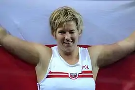 Anita Włodarczyk (née le à Rawicz) est une athlète polonaise spécialiste du lancer du marteau, actuelle détentrice du record du monde avec 82,98 m[1]. Championne du monde en 2009, 2013, 2015 et 2017, et championne olympique à Londres en 2012, à Rio en 2016 et à Tokyo en 2021, elle compte également quatre titres de championne d'Europe obtenus en 2012, 2014 et 2016 et 2018. Première athlète à lancer à plus de 80 m dans sa discipline, elle a logiquement récupéré la médaille d'or des Jeux olympiques de Londres 2012, puisque celle qui l'avait devancée, la Russe Tatyana Lysenko a été disqualifiée pour dopage par le CIO à la suite de la réanalyse de ses échantillons le .