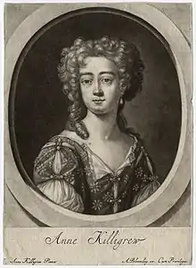 Anne Killigrew (1660 - 1685) est une poète et peintre anglaise, décrite par ses contemporains comme « une grâce pour la beauté et une muse pour l'esprit ». Née à Londres, elle et sa famille sont actives dans les cercles littéraires et de la Cour. Les poèmes de Killigrew circulent sous forme manuscrite et rassemblés et publiés à titre posthume en 1686 après sa mort de la variole à l'âge de 25 ans. Ils sont réimprimés à plusieurs reprises par des érudits modernes, le plus récemment et de manière approfondie par Margaret Ezell[1],[2].