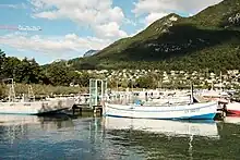 La limite sud et sud-est du territoire communal de la ville d'Annecy avec Sevrier et Veyrier-du-Lac est immergée sous les eaux du lac d'Annecy.