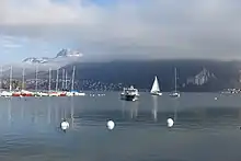 - le lac d'Annecy suivi des Préalpes du massif calcaire des Bauges au sud ;