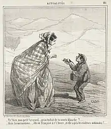 -Mais la voici Madame..., elle est Française à c't'heure, et elle a pris les couleurs nationales! (par Cham - 1860).
