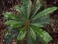 Il peut pousser jusqu'à 15 mètres de haut et a des feuilles qui font de 10 à 30 cm de long et 2 à 4 cm de large, tandis que les feuilles des jeunes plants peuvent être beaucoup plus grandes. Les fleurs blanches se produisent en grappes entre octobre et décembre (du milieu du printemps au début de l'été) dans son aire d'origine.