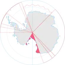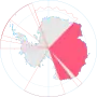 L'Antarctique couvre une superficie de plus de 14 000 000 km2, ce qui en fait le quatrième plus grand continent avec une surface environ 1,3 fois plus grande que celle de l'Europe[40]. En hiver, le continent antarctique double sa superficie par une banquise qui le prolonge jusqu'à près de 800 km du rivage et des glaces flottantes allant jusqu'à 800 km des côtes[41].