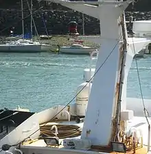 L'antenne est érigée au-dessus du navire.