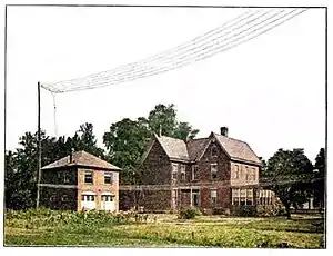 Pour les bandes décamétriques radioamateur, l’antenne en fil électrique rigide est longue de 27 mètres en forme de L renversé : 18 mètres horizontal et 9 mètres vertical[7].