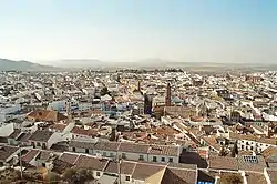 Vue générale d'Antequera, au fond, la Peña de los Enamorados | |