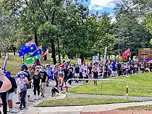 Le 21 août 2021, des scènes violentes ont éclaté tout au long d'une manifestation contre le confinement à Melbourne, alors que plus de 4 000 manifestants ont affronté la police qui a fait usage de gaz lacrymogène, de gaz poivré et de balles en caoutchouc, alors que des manifestations de moindre ampleur à Sydney, Brisbane et Cairns avaient lieu. Certaines protestants ont brandi le drapeau Eureka[34].