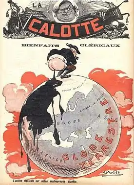 Les anticléricaux sont parfois qualifiés de « bouffeurs de curés » dans le jargon politique français. Parmi leurs slogans les plus célèbres, on peut citer « À bas la calotte ».