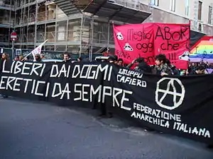 Selon Domenico Tarizzo dans L'anarchie : histoire des mouvements libertaires dans le monde, « Une veine "sauvage" du mouvement socialiste et anarchiste est l'anticléricalisme, conçu comme la guerre au Mal, aux Puissances ténébreuses du passé, dont le Vatican est le centre, à la fois fastueux et occulte d'où s'exerce la domination sur les consciences »[15].
