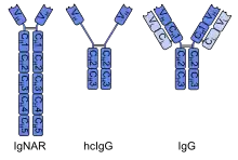 - (en) Cet article est partiellement ou en totalité issu de l’article de Wikipédia en anglais intitulé « Single-domain antibody » (voir la liste des auteurs).