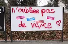 Des dizaines d'actions ont eu lieu sur la période de la campagne[57],[58],[59],[60], 850 panneaux ont été ciblés[61].