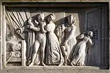 L'Évasion de Lavalette (vers 1834), bas-relief anonyme ornant sa tombe. Paris, cimetière du Père-Lachaise.