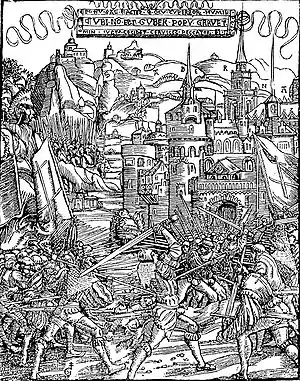Afin de rétablir l'ordre et le catholicisme sur ces terres et empêcher que les idées luthériennes ne se propagent, Antoine dut réunir rapidement une armée, le , à Nancy[2]. Composée de 12 000 à 15 000 hommes, l'armée ducale comptait des mercenaires et des gentilshommes Lorrains, mais aussi des lansquenets issus d'autres états du Saint-Empire, des fantassins Espagnols et des cavaliers de diverses origines. Le duc fut bientôt rejoint par ses frères, le cardinal Jean de Lorraine et Louis, comte de Vaudémont, l'évêque de Toul et le comte de Nassau-Sarrebruck[2]. L'armée d'Antoine pénétra en Alsace, tint le château de Haut-Bar le , brûla Lupstein le et reprit Saverne le . Après le pillage de Saverne, l'armée ducale se dirigea vers Marmoutier, célèbre pour son abbaye, puis Molsheim. Au cours d'une bataille dans le secteur de Scherwiller-Châtenois, l'armée ducale battit et massacra une armée de rustauds, le . Le duc Antoine et sa suite regagnèrent Nancy le [2]. Il dut tout de même par la suite promulguer d'autres édits contre les Protestants.