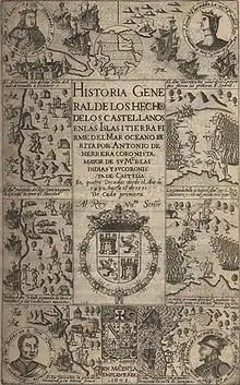 - Historia general de los hechos de los Castellanos en las islas y tierra firme del Mar Océano que llaman Indias Occidentales (Madrid, 1601-1615, 4 vols)