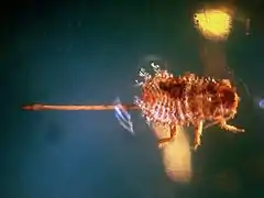 Un aphidien fossilisé dans une goutte d'ambre (mer Baltique).