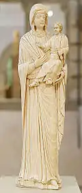 En 430, le mot grec Theotokos qui signifie « Mère de Dieu » est sanctionné par le concile d’Éphèse et défend l’idée que Jésus est à la fois le Fils de Marie et le Fils de Dieu devenu homme et donc que Marie est la Mère de Dieu. À la fin du VIIe siècle, la liturgie syrienne s’étend à Byzance et lors du deuxième concile de Nicée en 787, en réponse à l’iconoclasme de l’Empire byzantin, la dévotion de la Theotokos prend un essor encore plus grand. La vénération de l’Église pour la doctrine de la Theotokos est alors réaffirmée[3]. Ces paroles illustrent bien cette nouvelle position pour Marie : « Tout ce que chante de la Vierge la liturgie byzantine, elle le fait découler de sa foi en Jésus vrai Fils de Dieu et vrai Dieu, qui a remporté la victoire définitive sur le péché, le démon et le monde. Ainsi on ne peut adorer le Fils sans honorer la Mère »[4].