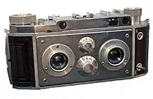 Aux plus fortunés sont proposés des appareils rigides, en bois ou en métal, gainés ou non. Les obturateurs, les diaphragmes, les rampes de mise au point sont soigneusement couplés par des systèmes de biellettes articulées sur des bagues concentriques entourant chacun des objectifs, eux-mêmes très élaborés, souvent de type Tessar ou équivalent. Les plus jeunes ont droit à des appareils moulés en bakélite dépourvus de tout réglage et munis d’objectifs simples.