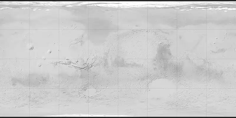 Par commodité, la surface de Mars a également été divisée en trente « quadrangles » par l'USGS, souvent utilisés pour structurer les études aréographiques ou aréologiques.