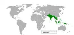 Pour POWO[5], l’espèce est originaire des Philippines et a été introduite aux îles Andaman, Bangladesh, Archipel de Bismarck, Bornéo, Cambodge, Îles Carolines, Chine Centre-Sud, Comores, République dominicaine, Himalaya oriental, Fidji, Hainan, Haïti, Inde, Jamaïque, Java, Laos, Îles-sous-le-Vent britanniques, Petites îles de la Sonde, Malaisie péninsulaire, Maldives, Maluku (Moluques), îles Mariannes, Nouvelle-Guinée, Nicobar, Puerto Rico, Santa Cruz, Îles de la Société, Solomon, Sri Lanka, Sulawesi, Sumatra, Taïwan, Thaïlande, Trinidad-Tobago, Vanuatu, Vietnam.