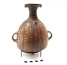 Un aríbalo ou urpu est la forme la plus représentative de la poterie inca utilitaire. C'est un grand pichet avec une bouche évasée, un long cou, un corps volumineux et une base conique.