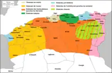 L'arabe algérien se caractérise par quatre grandes variétés régionales et des parlers urbains dénommés « hadri » dans les villes de traditions arabo-andalouses et turques[9],[8] :