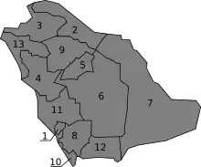 L'Arabie saoudite est divisée en treize provinces (mintaqah idāriyya en arabe, expression qui se traduit littéralement par « région administrative », dont la forme au pluriel est manatiq idāriyya).
