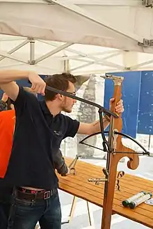 Contrairement au gastrophète, l'arbalète dispose d'un système avec une détente.