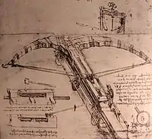 Le projet de Vinci, tel qu'il apparaît dans le Codex Atlanticus[2], est de fabriquer une arbalète géante afin d'augmenter la puissance du trait et de semer la panique dans les rangs ennemis[1].