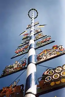 En Allemagne, l'arbre de mai porte le nom de Maistange ou de Maibaum, ou encore de Maie[14],[15].