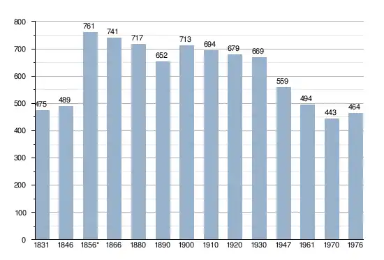 - Sources : INS, Rem. : 1831 jusqu'en 1970 = recensements, 1976 = nombre d'habitants au 31 décembre.