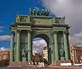 La porte a été reconstruite en 1827-1834 par Vassili Stassov. La décoration sculpturale a été conçue par Vassili Demuth-Malinovski. La structure est surmontée de six chevaux conduits par Niké, la déesse de la victoire. Les chevaux sont l'œuvre de Peter Clodt von Jürgensburg. Les touristes peuvent visiter un musée militaire accessible par une petite porte.