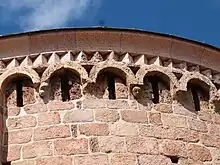 Arcature lombarde, décor du chevet de l'église Sainte-Marie de Coustouges.