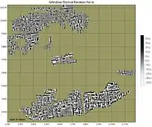Un exemple de données recueillies dans le domaine archéologique par l'usage de cette technique d'investigation géophysique est fourni par un relevé du site archéologique d'Aphrodisias, en Turquie, effectué dans le cadre d'un programme de recherche parrainé par l'université de New York[9]. L'étude de la résistance électrique de ce site de l'époque hellénistique menée par Lewis Somers, entre 1995 et 1998[10], a couvert environ 20 hectares de terrain non excavé[9], environ 200 000 mètres carrés[10]. L'étude a permis de révéler que le tracé de la ville s'est conformé à suivre un plan en grille et de préciser que dans les zones d'habitation, les îlots urbains, ont une largeur de 35,5 mètres ou 120 pieds ioniques et une longueur de 39,0 mètres ou 132 pieds ioniques[10]. De même, elle a révélé que les places publiques et les bâtiments civils du centre de la ville ont été planifiés selon la même grille, comme le montre très clairement le tracé de l'Agora du Nord (la place publique principale)[10].